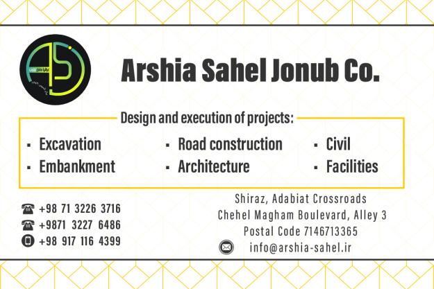 Arshia Sahel Jonub Industrial and Manufacturing Company, with twenty years of experience in the building construction and road construction industry, operates in various fields, including design, calculation, supervision, consultancy, and execution of architectural, civil, and building construction projects from foundation to façade; interior and exterior decoration of all types of buildings; drafting, surveying, excavation, and backfilling; matters related to building equipment; energy production; trade and commerce, including the purchase, sale, preparation, and production of authorized goods; export and import of authorized goods; procurement of light and heavy machinery; and manpower supply. With its commitment to providing high-standard products and services, the company is recognized as one of the most popular, customer-focused, dynamic, and leading groups in the industry.